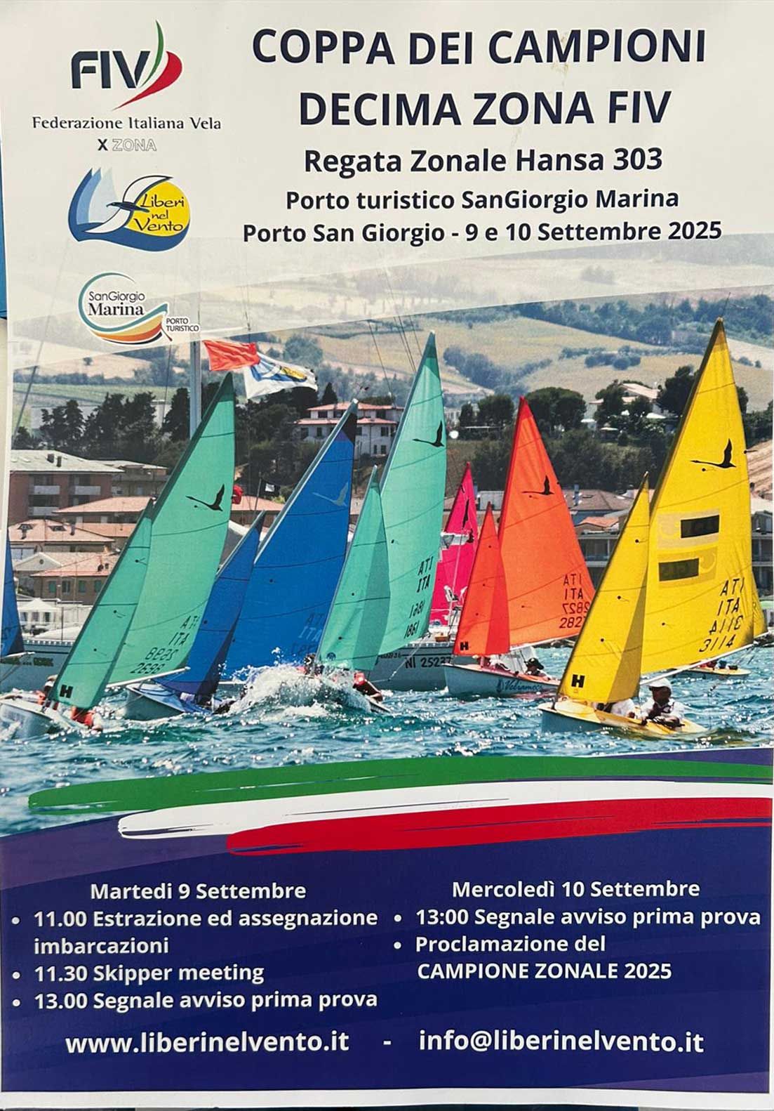 Il 9 e il 10 Settembre 2025 al Porto Turistico San Giorgio Marina di Porto San Giorgio si terrà la Regata Zonale Hansa 303
